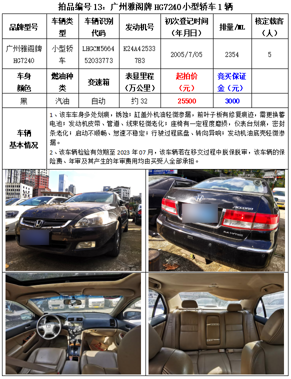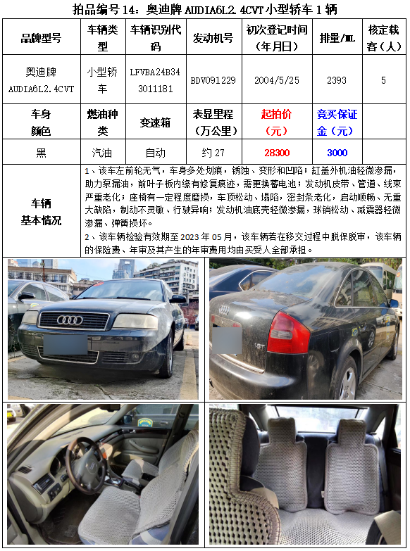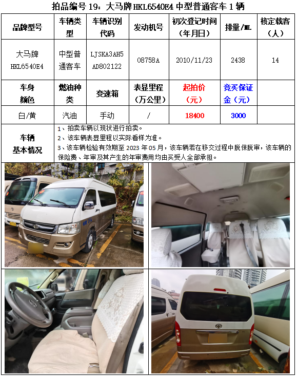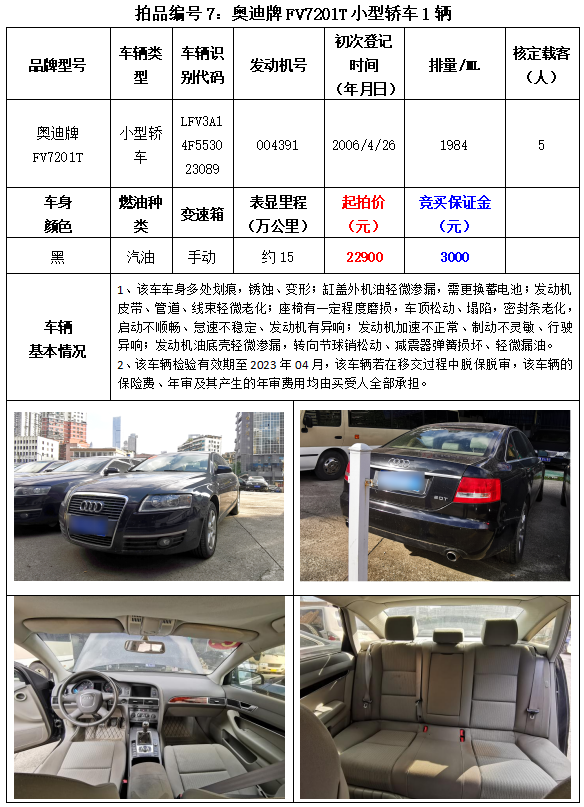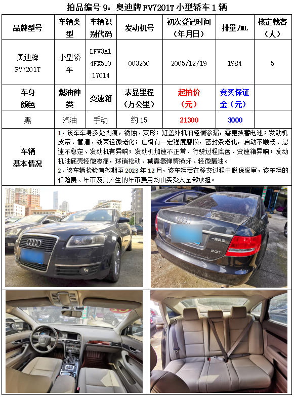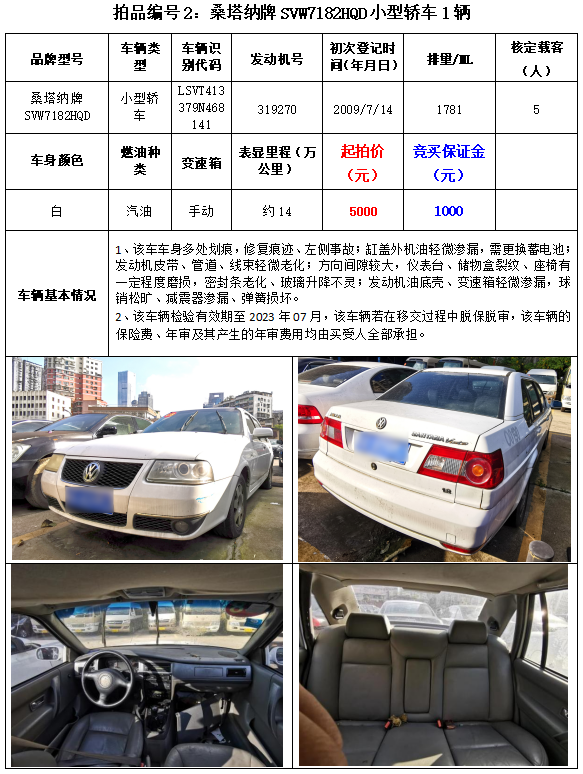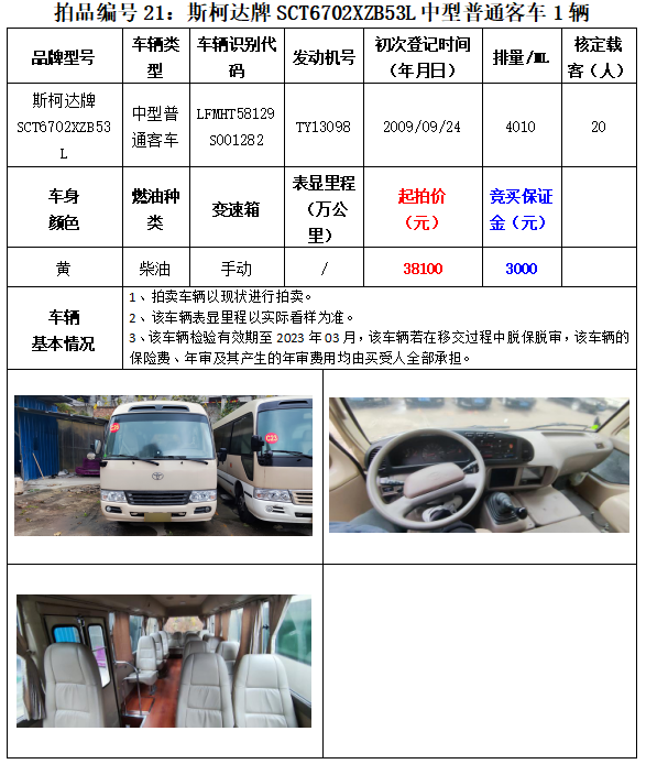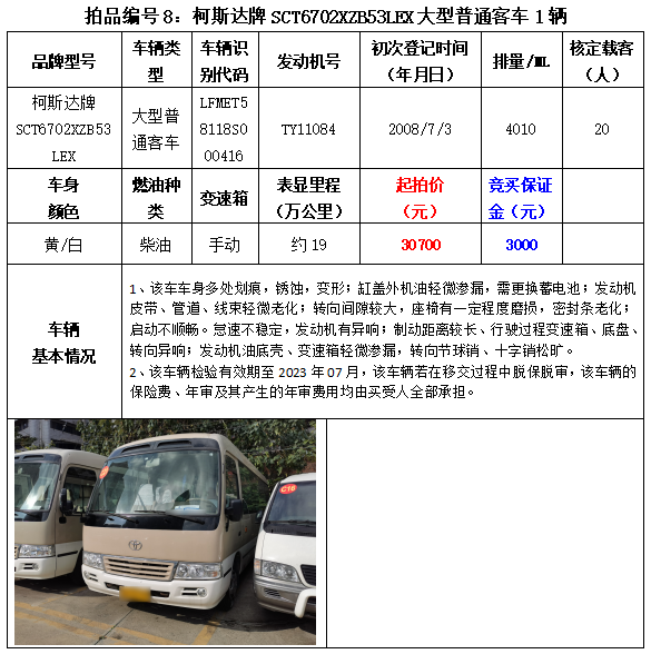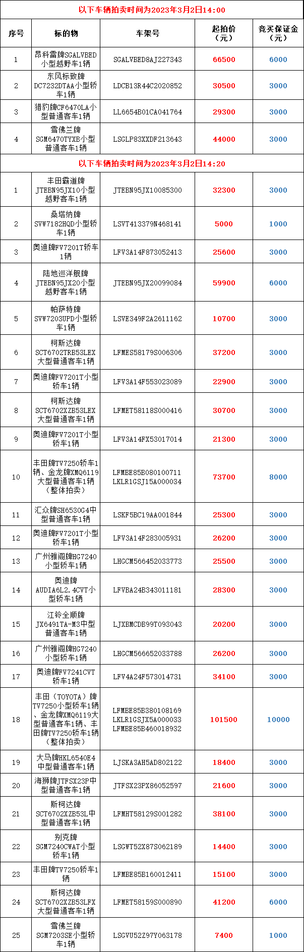 以下車(chē)輛拍賣(mài)時(shí)間為2023年3月2日14:20開(kāi)始
