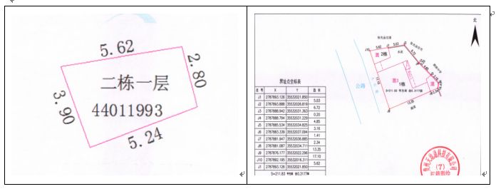 6、龍廣鎮(zhèn)南環(huán)路房地產(chǎn)(原龍廣信用社),證載建筑面積:453.34㎡,實(shí)測建筑面積:423.42㎡證載土地使用權(quán)面積:98.7㎡,實(shí)測土地使用權(quán)面積:101.64㎡;
