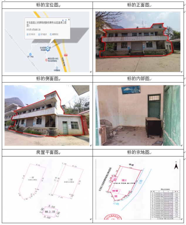 標(biāo)的坐落于安龍縣海子鄉(xiāng)海子村海二組,房屋總層數(shù)3,其中1幢1-3層證載建筑面積:319.19㎡,實(shí)測建筑面積316.5,2幢1層證載建筑面積:17.11㎡,實(shí)測建筑面積19.17房屋產(chǎn)權(quán)證號:安房權(quán)證海子鄉(xiāng)字第00003470號,設(shè)計(jì)用途分別為辦公住宅、其它,混合結(jié)構(gòu);土地使用權(quán)證號:安國用(2014)第18號,證載土地使用權(quán)面積:476.74㎡,實(shí)測土地使用權(quán)面積480.72㎡,地類(用途)金融用地,使用權(quán)類型為出讓,終止日期為2054年11月22日止。