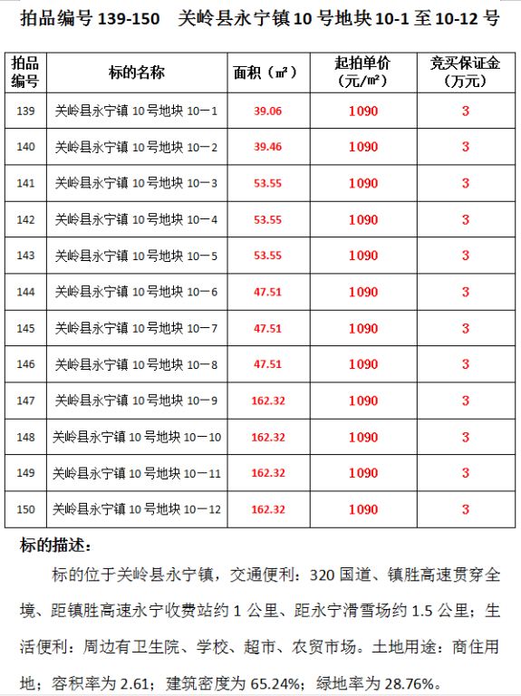關嶺縣永寧鎮(zhèn)150宗宅基地拍賣公告