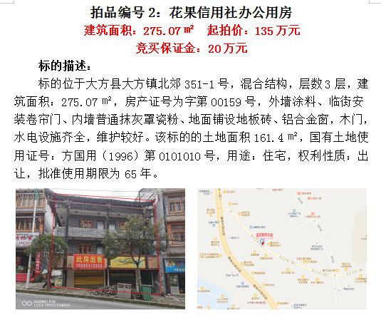 貴州省畢節(jié)市大方縣門面、房產(chǎn)、廠房、設備及土地拍賣公告