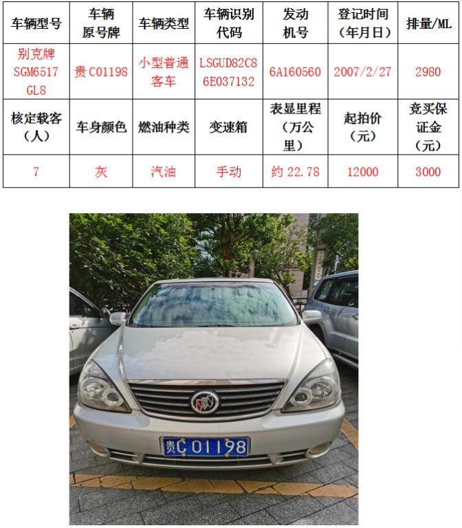 拍品編號4:別克牌SGM6517 GL8小型普通客車一輛