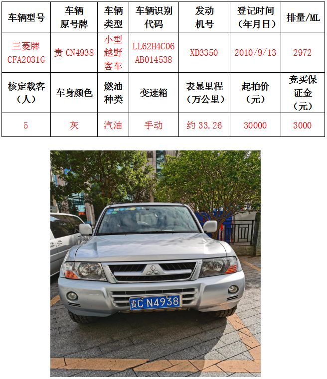 中國農(nóng)業(yè)銀行股份有限公司遵義分行車輛拍賣