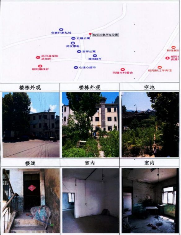 標的位于鳳岡縣綏陽鎮(zhèn)街上,東臨其他住宅樓棟,南臨空地,西臨政通路,總建筑面積1021.56㎡(其中:辦公340.52㎡,成套住宅681.04㎡),房屋所有權證:遵房權證鳳岡縣字第200900933號;土地使用權面積:1725.30㎡,國有土地使用證:鳳綏國用(2009)第45號,用途:商服用地,土地使用權類型:國家出資入股,權證未記載土地使用權年限。