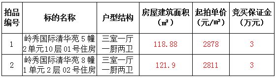 拍品1-2號 嶺秀國際清華苑2套住宅用房
