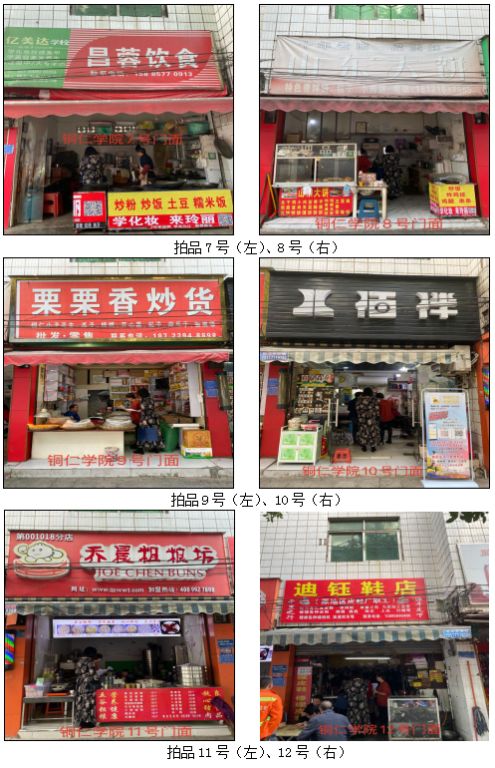 拍品34至46號標的位于銅仁市清水大道實驗小學東校區(qū),面積11.88——33.92㎡,租賃期3年(2021.04.01至2024.03.31止);