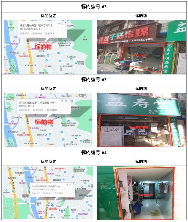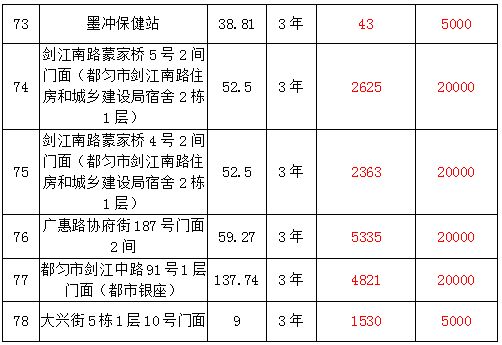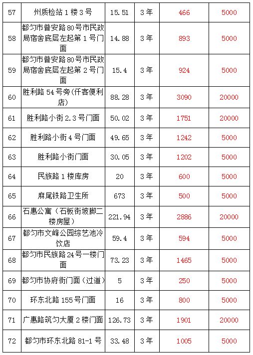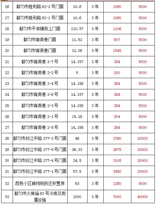 1、都勻市劍江中路、環(huán)東北路、文明路、民族路、勝利路、會(huì)云橋、育英巷等62處門(mén)面3年租賃權(quán),面積約5㎡-137.74㎡;