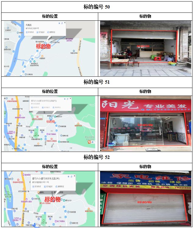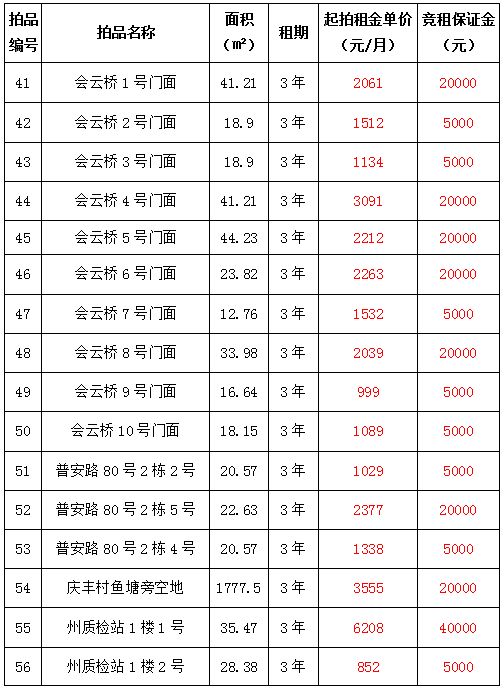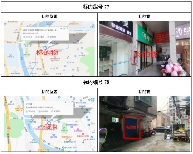 2021年1月28日下午14:00拍賣(mài)標(biāo)的共計(jì)38個(gè)標(biāo)的,其中:41—72號(hào)標(biāo)的目前均為租賃狀態(tài),如承租人參與競(jìng)租,其享有同等價(jià)位優(yōu)先購(gòu)買(mǎi)權(quán),其余73—78標(biāo)的為閑置狀態(tài)。