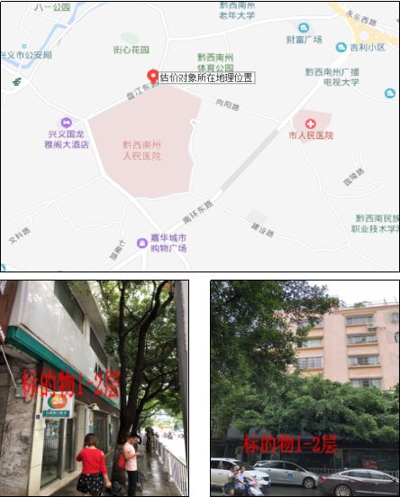 1、標(biāo)的物位于興義市盤江東路49號A幢第1號1-2層的綜合房地產(chǎn),標(biāo)的物建成于2005年,南面臨盤江東路,其余三面均臨多層建筑樓棟?;旌辖Y(jié)構(gòu),水電、生活燃?xì)?、消防等設(shè)施齊全。使用正常,維護狀況較好,普通裝修,地面鋪地磚,墻面及頂面刮瓷粉刷乳膠漆,鋁合金窗,防盜門、卷簾門、木門。