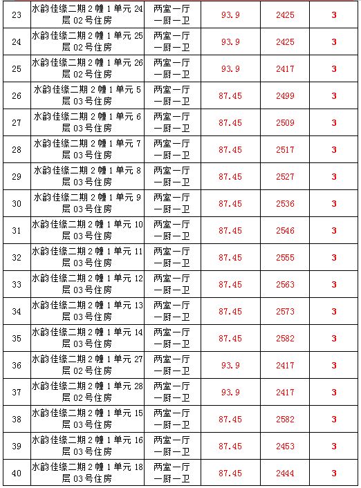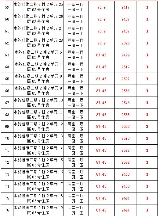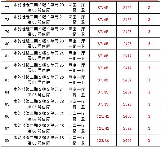 2、水韻佳緣82套住宅房產(chǎn),建筑面積:87.45—128.24㎡,起拍價(jià):2373—2582元/㎡;