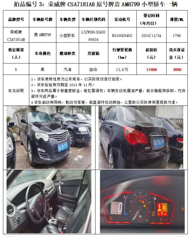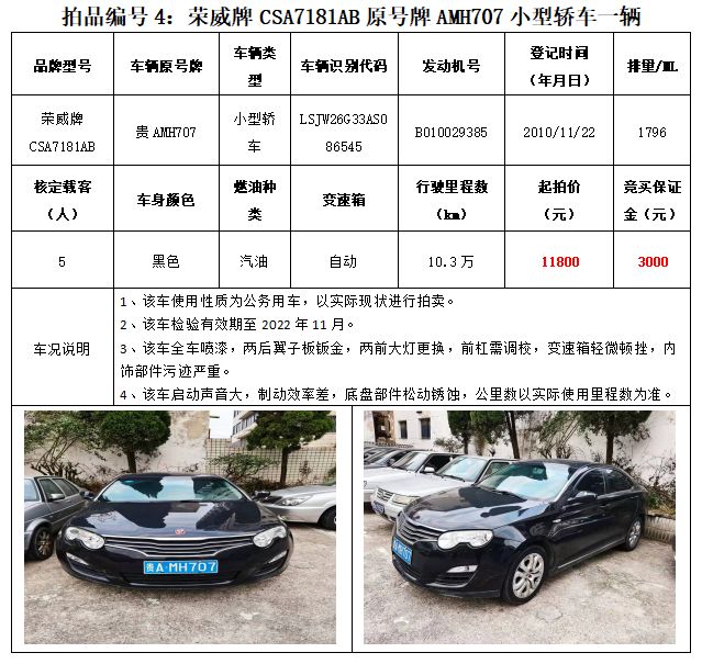 【已結(jié)束】貴州春秋拍賣(mài)10輛機(jī)動(dòng)車(chē)拍賣(mài)公告