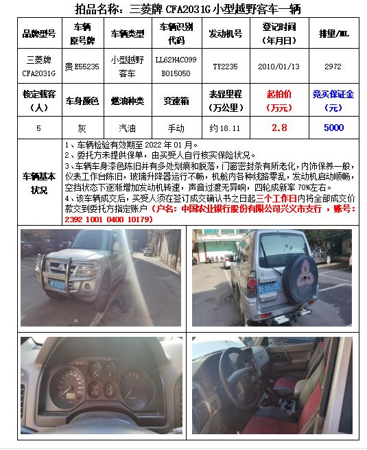 【已結(jié)束】中國(guó)農(nóng)業(yè)銀行股份有限公司黔西南分行機(jī)動(dòng)車拍賣公告