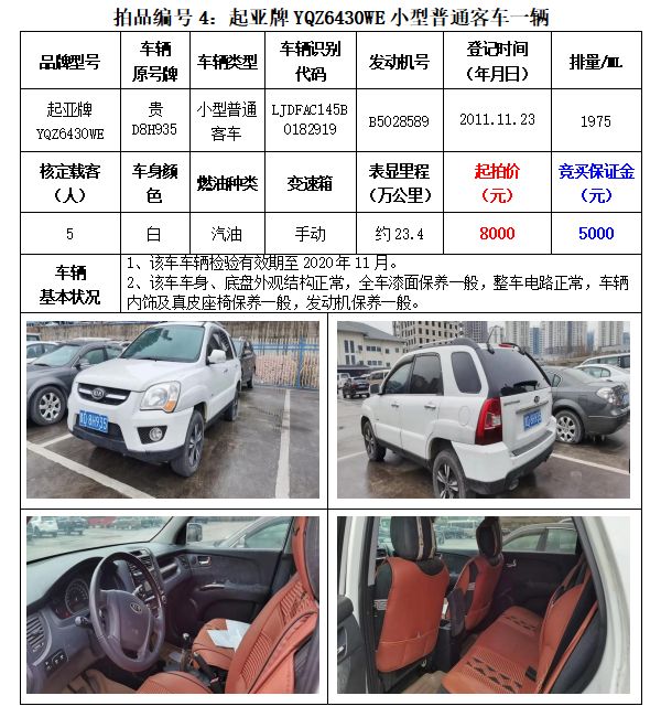 貴州春秋拍賣有限責任公司:機動車拍賣公告