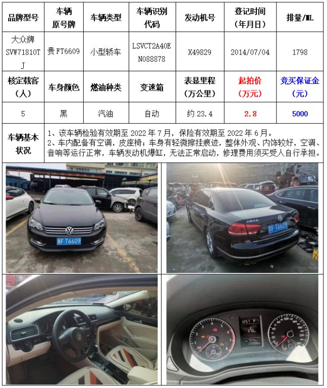 拍品編號1:大眾牌SVW71810TJ小型轎車一輛