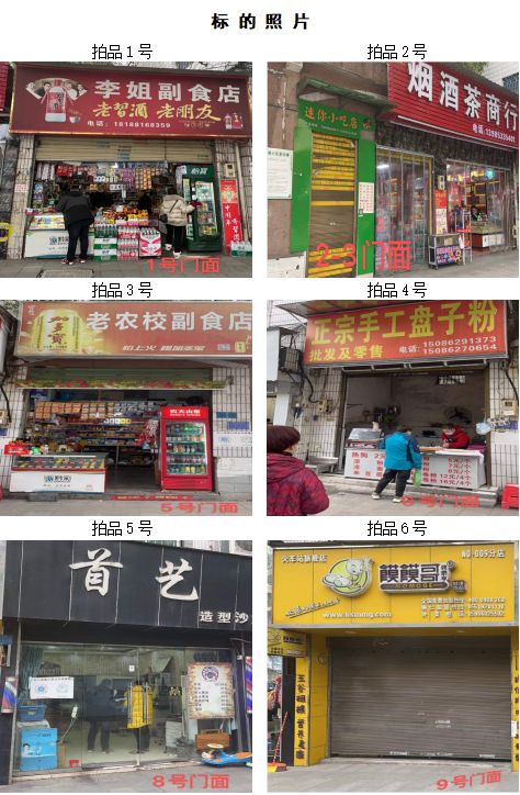 拍品1至9號標(biāo)的:位于清水大道銅仁農(nóng)校旁,地理位置優(yōu)越,屬于黃金大道。附近有大專、中學(xué)、小學(xué)、幼兒園等,教學(xué)配套齊全;擁有眾多小區(qū),人口流動能力強,固定人口較多;周圍有超市、商場,人口流動性強。地理位置優(yōu)越,屬于臨街門店,升值空間較大;地區(qū)基礎(chǔ)設(shè)施完善,公共交通、公共停車設(shè)施的增加,使該地升值空間進一步增大;建筑結(jié)構(gòu):磚混,面積:13.3㎡至29.4㎡不等(具體面積見上表),租賃期3年(具體日期見上表),保養(yǎng)情況:較好。