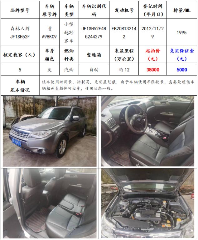 拍品編號(hào)11:森林人牌JF1SH52F小型越野客車一輛