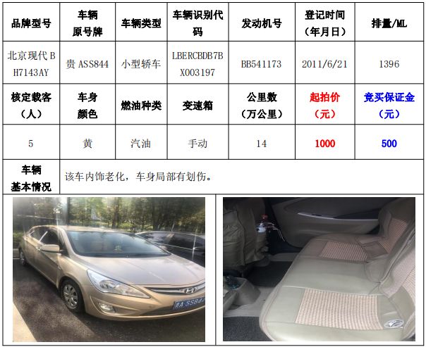 受委托,我公司定于2022年8月16日(星期二)下午14:30在貴州省貴陽市中華南路20號新大陸數(shù)碼廣場10樓D座會議室公開拍賣:寶來FV7142TXG、北京現(xiàn)代BH7143AY、廣州本田雅閣HG7203AB、昊銳SVW7189BJD小型轎車,共計4輛。