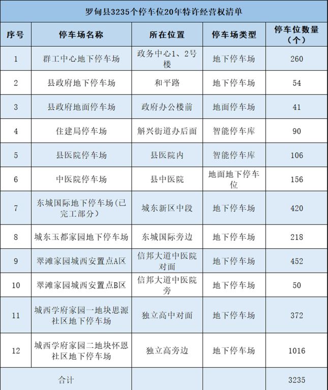 一、羅甸縣3235個停車位20年特許經(jīng)營權(quán)