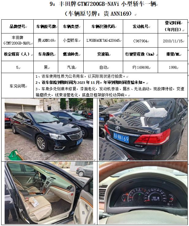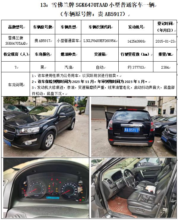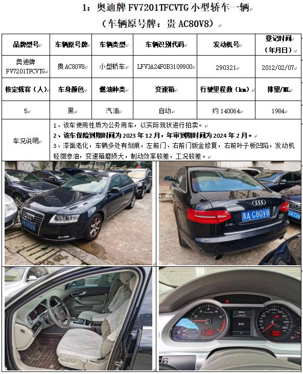 受委托,我公司定于2023年12月19日(星期二)下午15:00在貴州省貴陽市中華南路20號(hào)新大陸數(shù)碼廣場10樓D座會(huì)議室公開拍賣以下標(biāo)的: