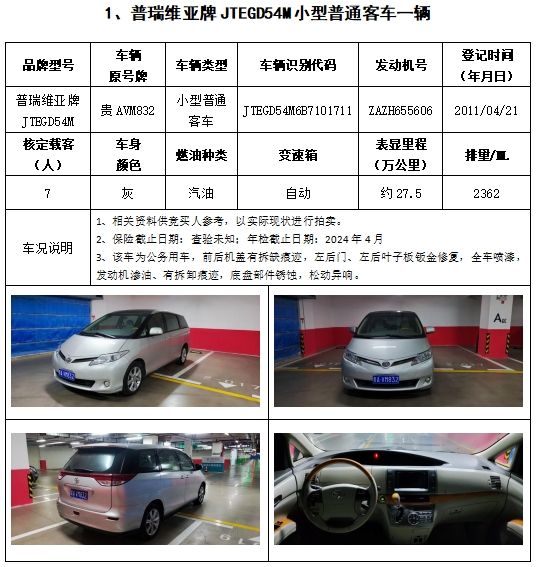 拍品編號1:普瑞維亞牌、海獅牌機動車共計2輛(整體拍賣)