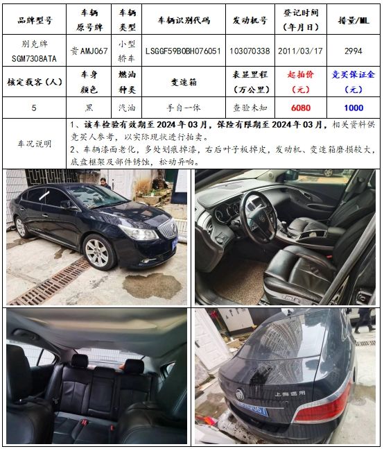 拍品編號(hào)1:別克牌SGM7308ATA小型轎車一輛;
