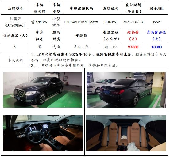 拍品編號(hào)2:紅旗牌CA7209HA6T小型轎車一輛;