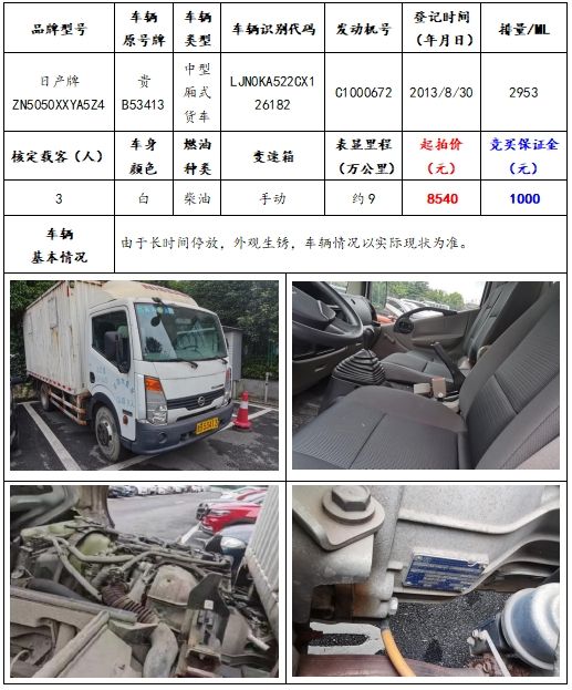 拍品編號(hào)3:日產(chǎn)牌ZN5050XXYA5Z4中型廂式貨車一輛