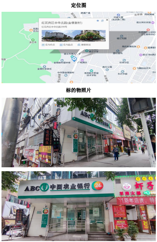 拍品編號(hào)9:遵義市紅花崗區(qū)內(nèi)環(huán)路茍家井農(nóng)行營(yíng)業(yè)所1層商業(yè)用房