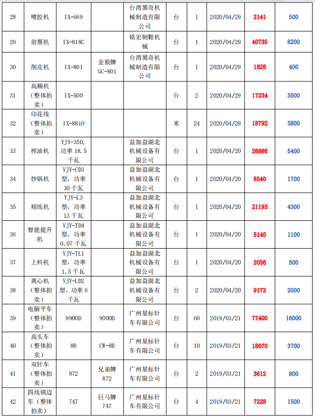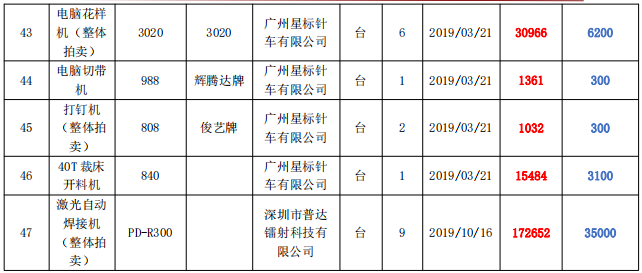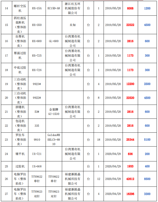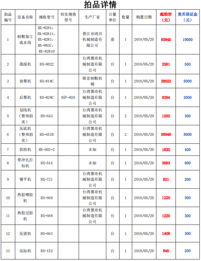 【05月21日】機器設備一批拍賣公告