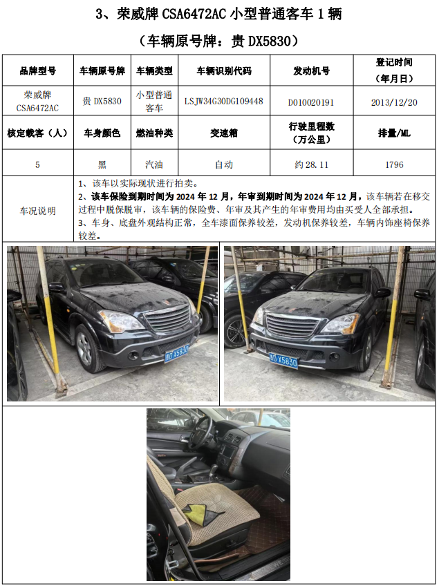 一、2024年5月21日(星期二)下午14:30在中拍平臺對梅賽德斯-奔馳牌、榮威牌車輛,共計3輛(整體拍賣),進行網(wǎng)絡(luò)拍賣。