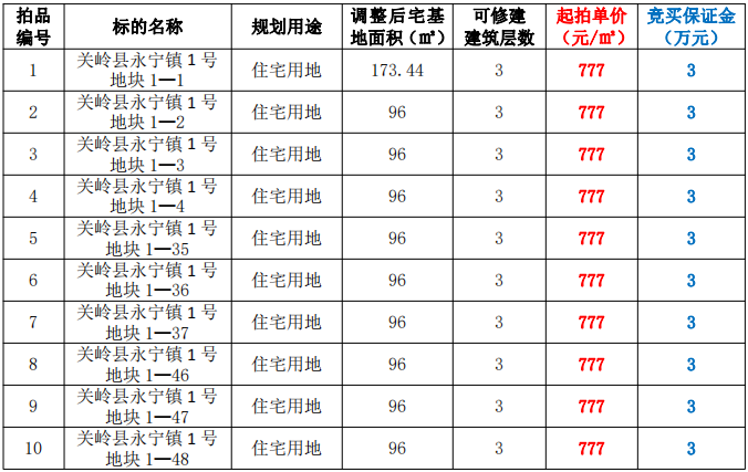 拍品編號(hào)1-10:關(guān)嶺縣永寧鎮(zhèn)1號(hào)地塊1—1至1—48