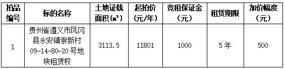【07月23日】貴州省遵義市鳳岡縣永安鎮(zhèn)崇新村崇新糧站租賃權(quán)拍賣電子競價公告