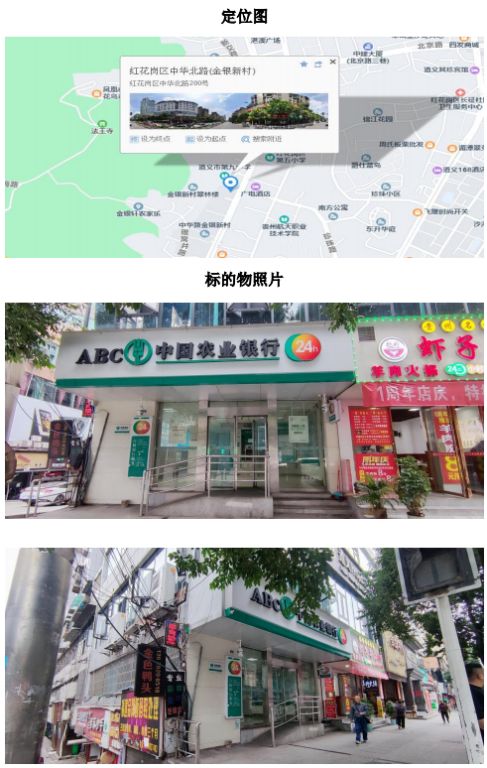 1、該標(biāo)的位于貴州省遵義市紅花崗區(qū)中華南路群力大廈1層,東臨中華南路,其余三面臨其他物業(yè)地塊,周邊商業(yè)氛圍濃重,交通便利,水、電設(shè)施齊全。標(biāo)的按照銀行營業(yè)點進(jìn)行過簡單裝修。
