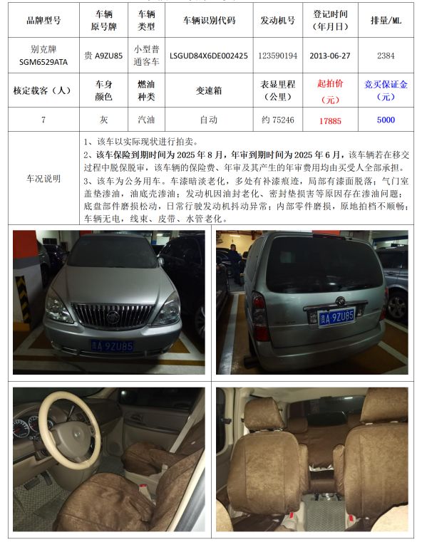 拍品編號(hào)5:別克牌SGM6529ATA小型普通客車1輛
