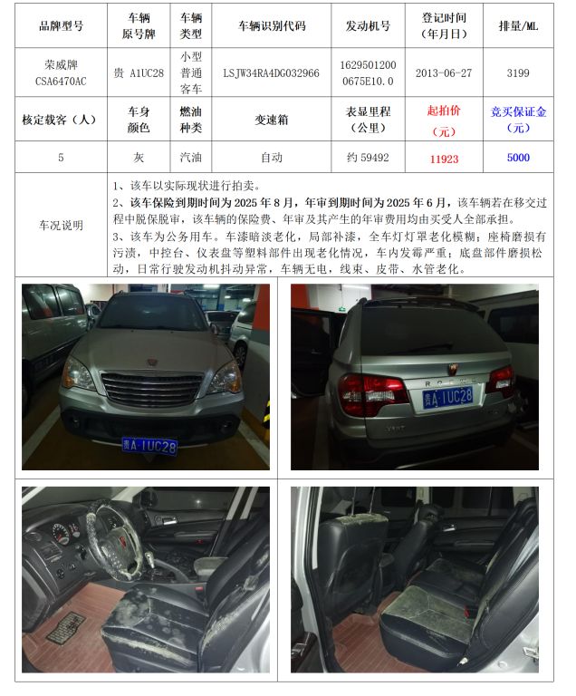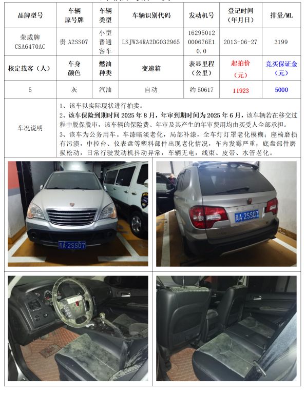 拍品編號(hào)3:榮威牌CSA6470AC小型普通客車1輛