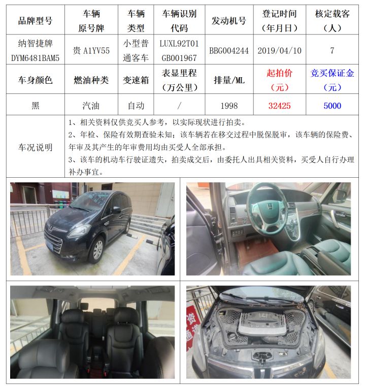拍品編號(hào)6:納智捷牌DYM6481BAM5小型普通客車1輛