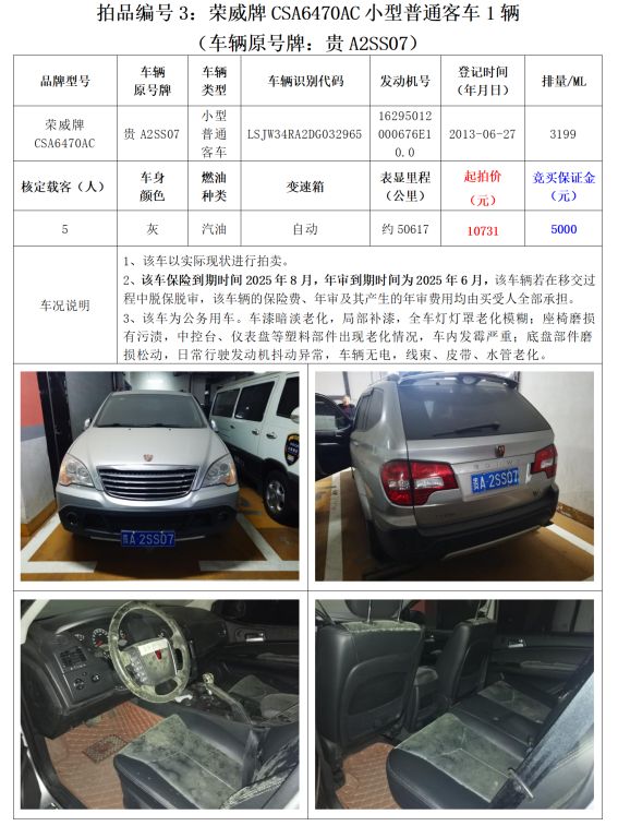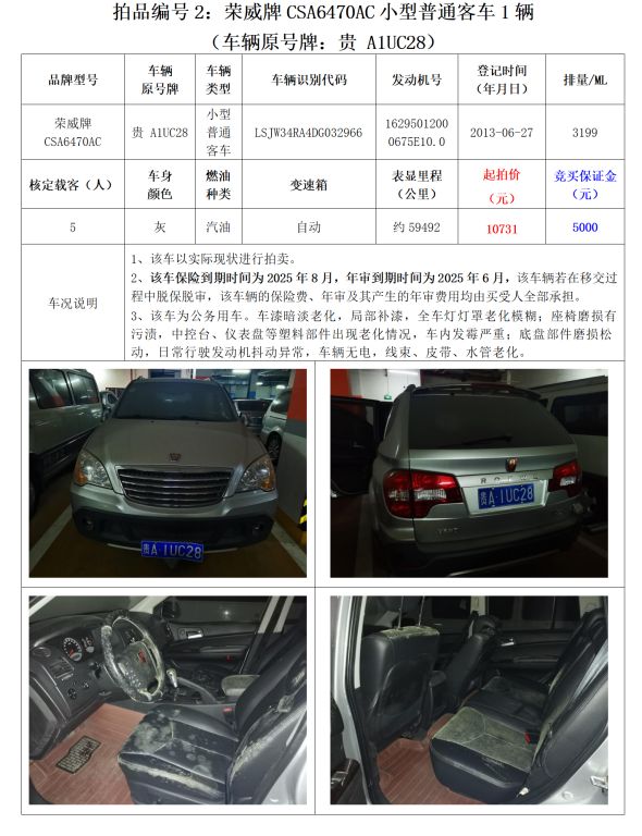 2、榮威牌CSA6470AC小型普通客車2輛;