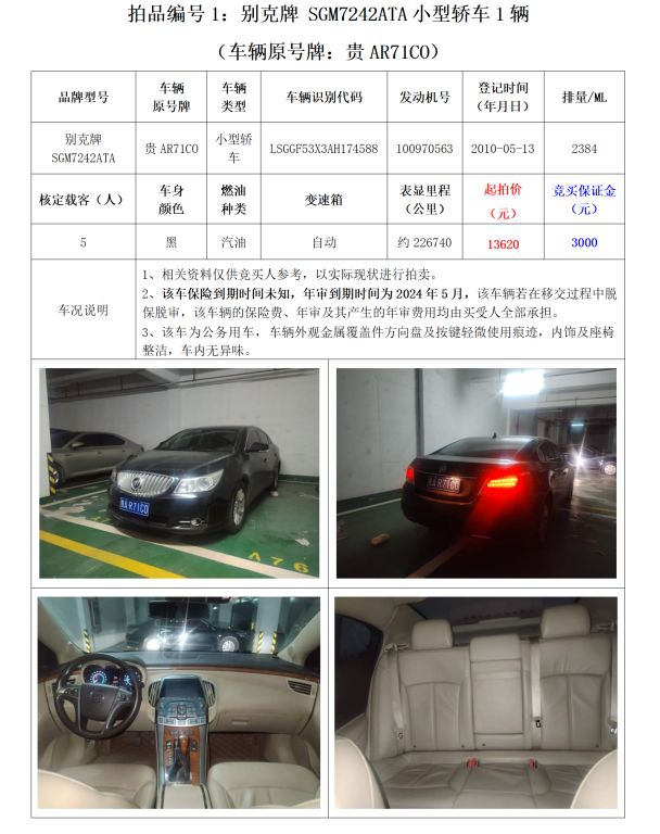 1、別克牌SGM7242ATA小型轎車1輛;