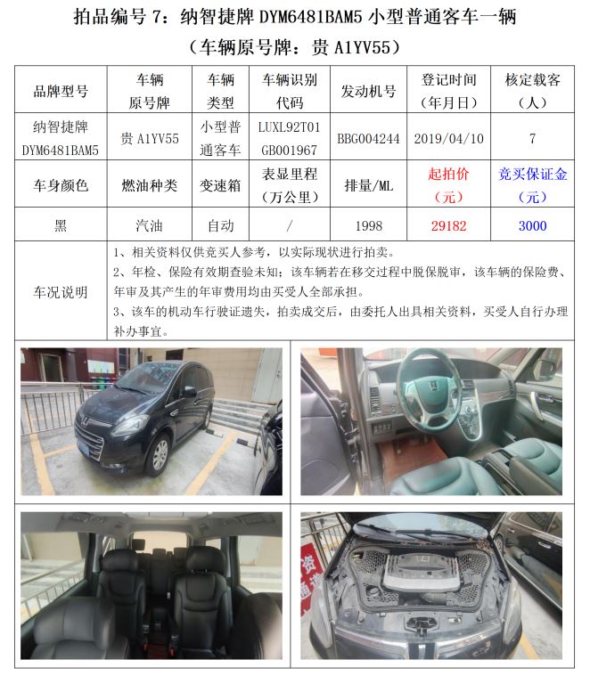 5、納智捷牌DYM6481BAM5小型普通客車1輛;