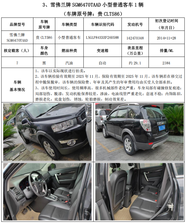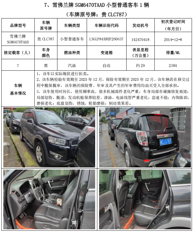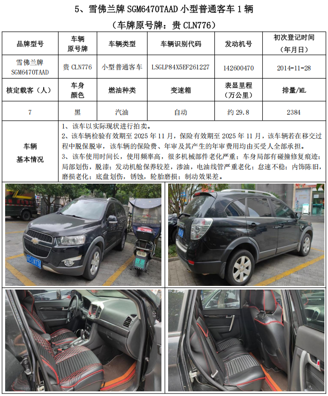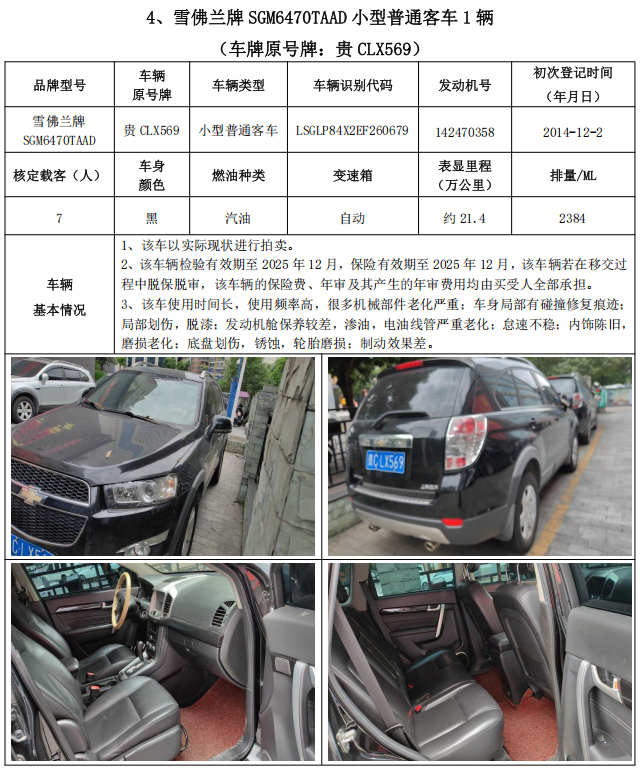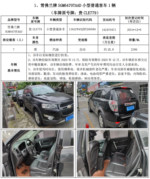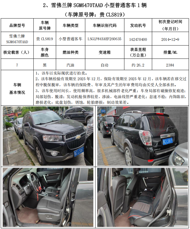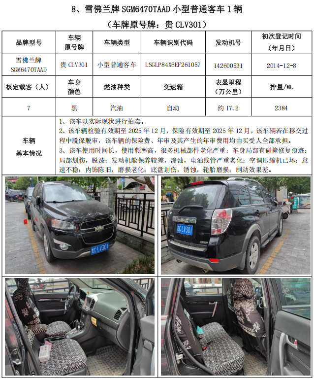 拍品編號1:雪佛蘭牌SGM6470TAAD、SGM6472ATA小型普通客車8輛,整體拍賣