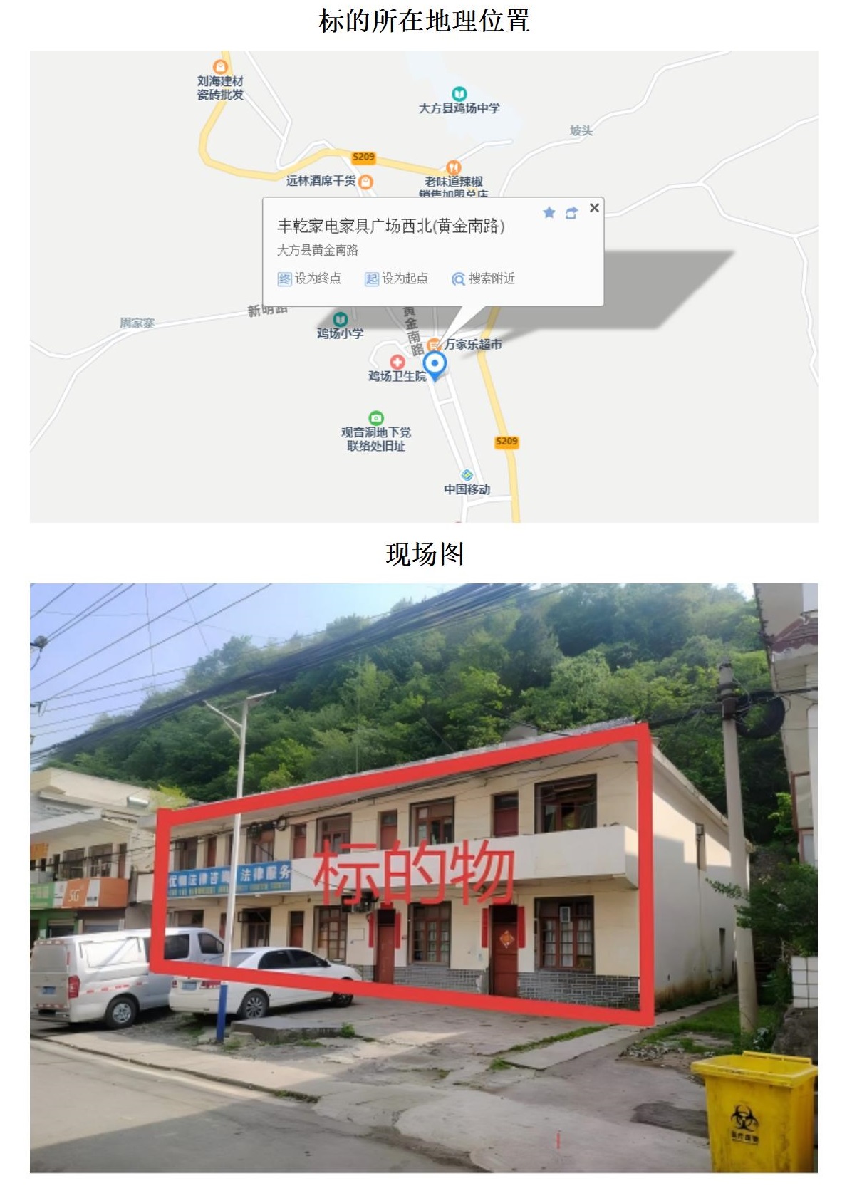 標(biāo)的位于雞場鄉(xiāng)雞場社區(qū)下街組。建筑面積:452.36㎡,土地面積:217.67㎡,建筑結(jié)構(gòu)為混合結(jié)構(gòu),總層數(shù)為2層,房屋用途為住宅,土地性質(zhì)為劃撥。
