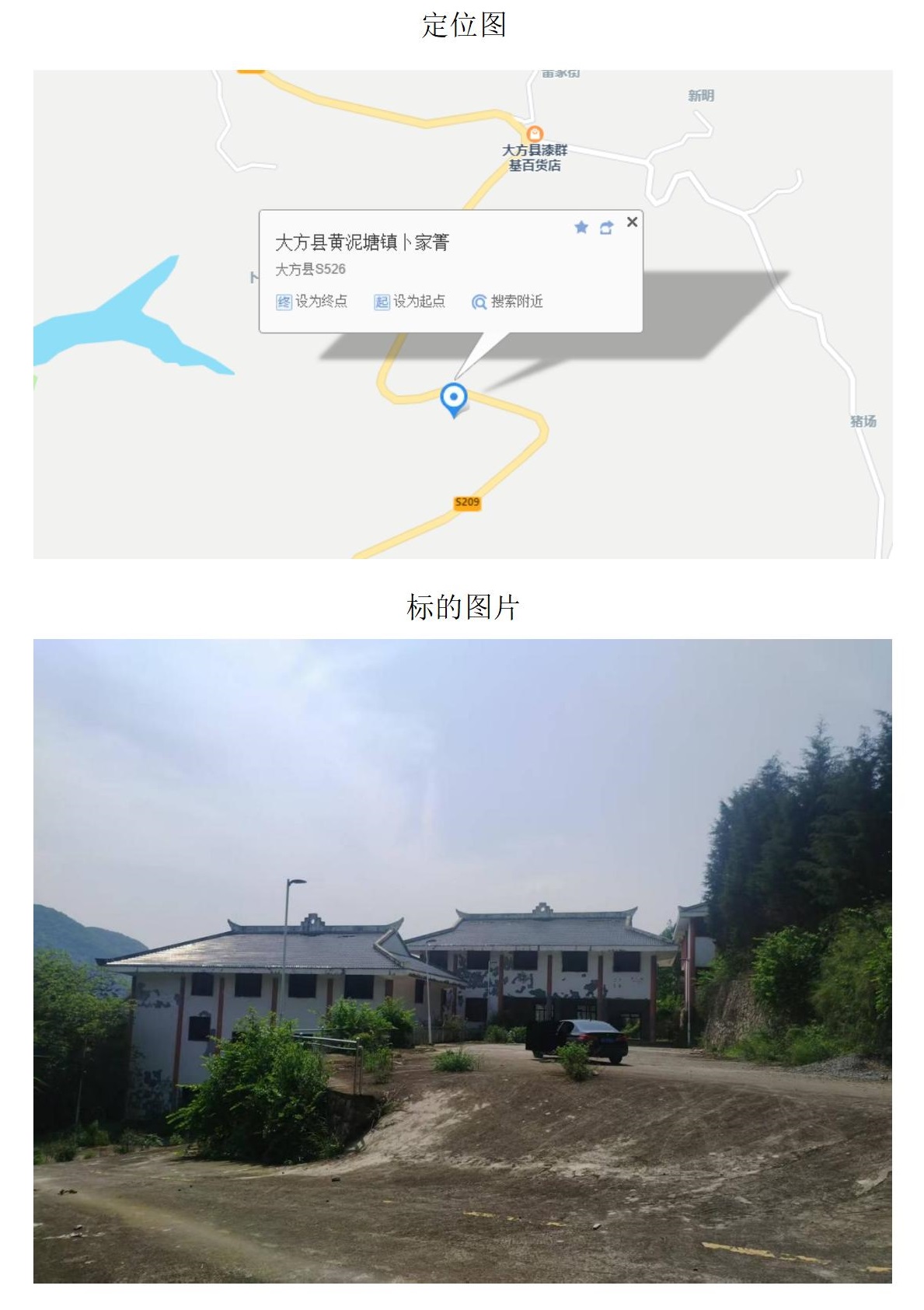 2、六龍道班房,建筑面積:95.43㎡,土地面積:96.67㎡,起拍價:8.87萬元,競買保證金:1萬元。