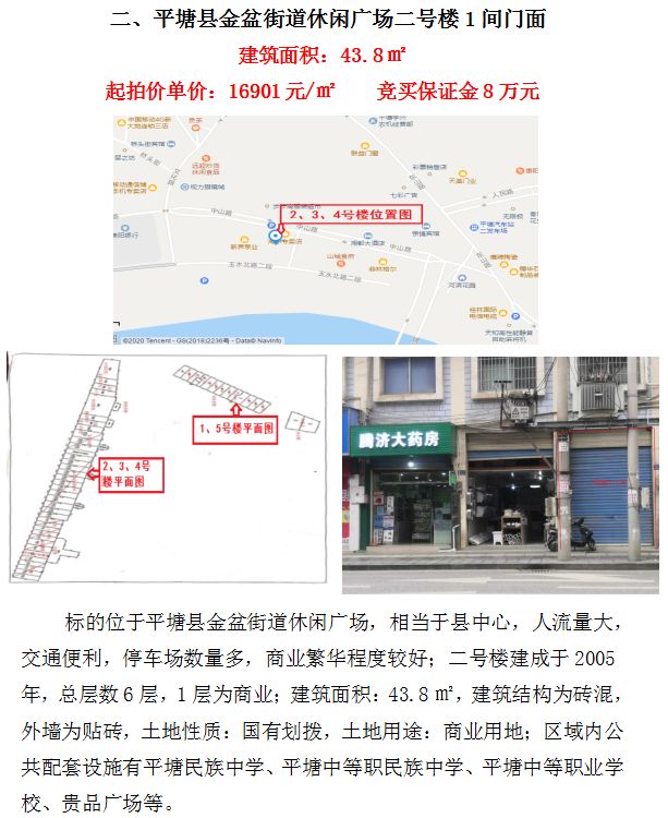 平塘縣原民族中學周邊門面拍賣公告