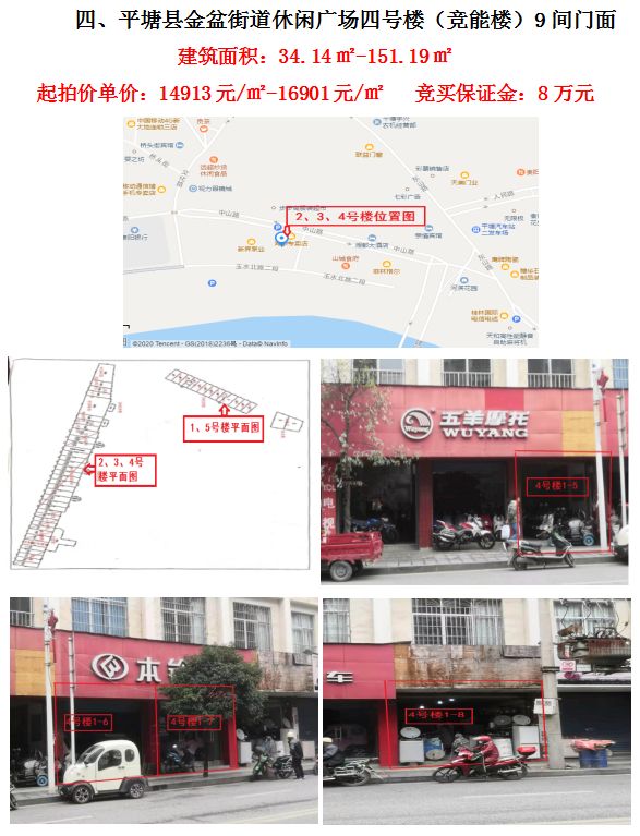 四、平塘縣金盆街道休閑廣場四號樓(競能樓)9間門面(建筑面積:34.14㎡-151.19㎡)
